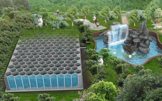 如果住宅小區(qū)沒有景觀水體,要優(yōu)選低洼綠地,生物景觀滯留,滲水路面,多功能調(diào)蓄設(shè)施等分散式雨水調(diào)蓄滲透技術(shù)。